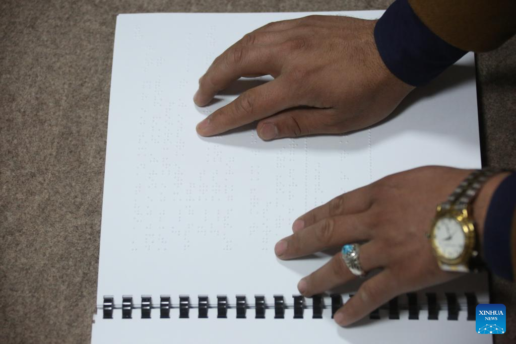 KABUL, Jan. 4 (Xinhua) -- Despite being blind, Reshad Hassan is busy writing books in Braille. He dismisses the idea that vision loss is a disability that can prevent a determined person from living a normal life in society.