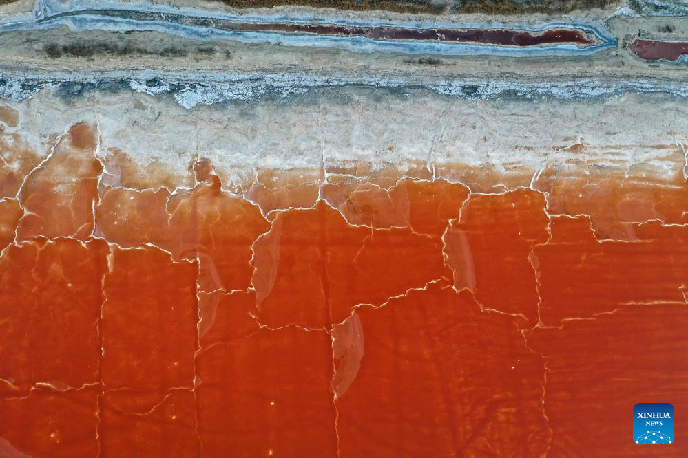 A drone photo taken on May 20, 2025 shows the scenery at a salt lake in Yuncheng, north China's Shanxi Province. (Xinhua/Zhan Yan)