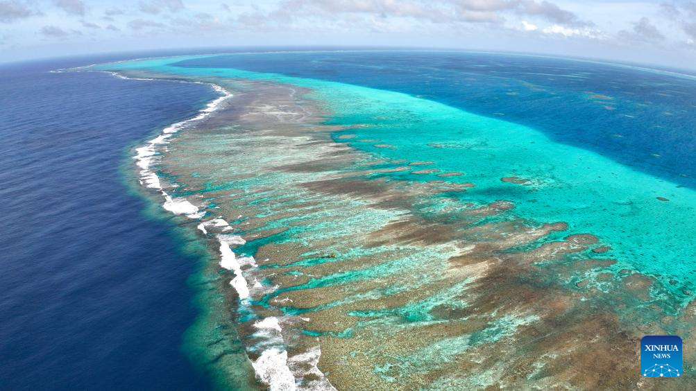 An aerial drone photo taken on Nov. 8, 2025 shows a view of China's Huangyan Dao national nature reserve in the South China Sea. The official website of China's central government (www.gov.cn) on Sept. 10, 2025 posted the State Council's approval of the request by the Ministry of Natural Resources for the establishment of the Huangyan Dao national nature reserve, agreeing to the establishment of the nature reserve. (Xinhua/Bei He)