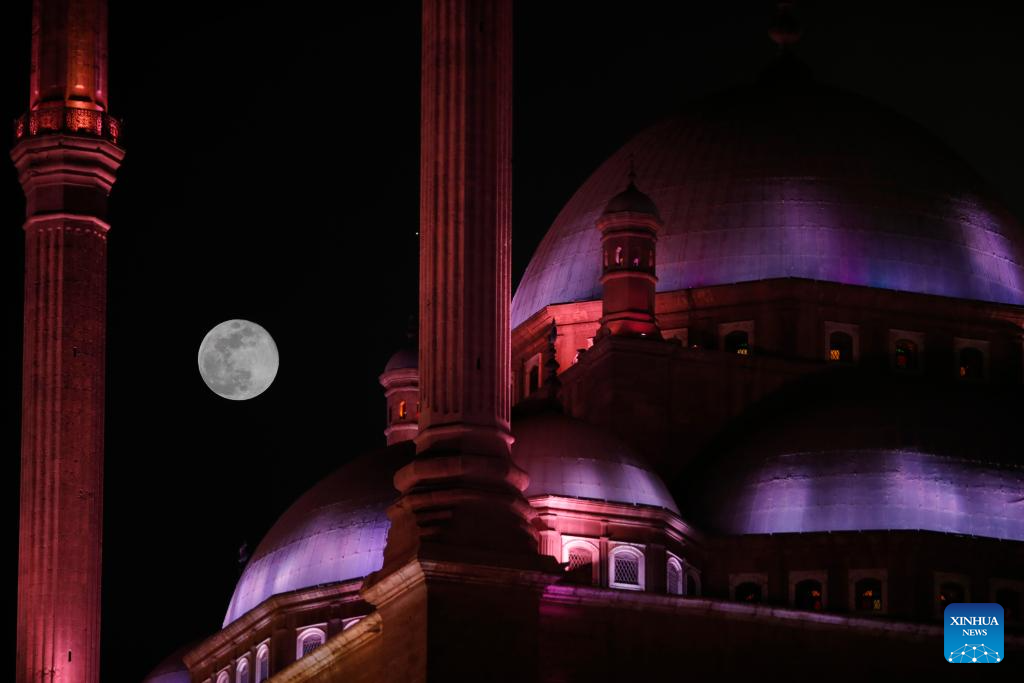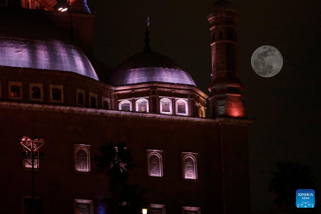 This photo taken on Jan. 3, 2026 shows the super moon above the Saladin Citadel in Cairo, Egypt. (Xinhua/Ahmed Gomaa)