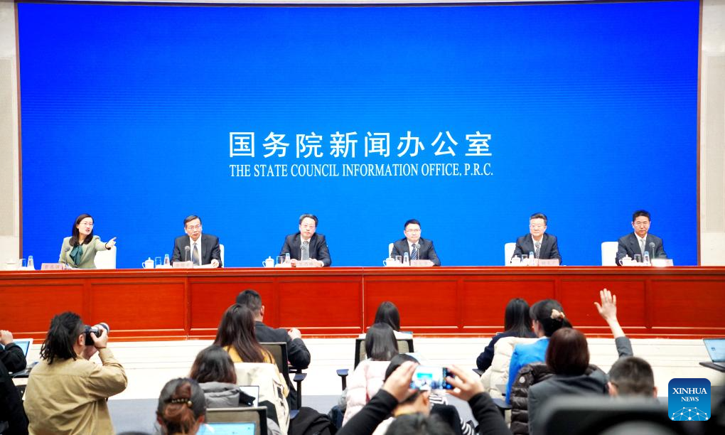 The State Council Information Office (SCIO) holds a press conference on progress and achievements in the development of the Yangtze River Economic Belt in the past ten years in Beijing, capital of China, Jan. 5, 2026. (Xinhua/Pan Xu)