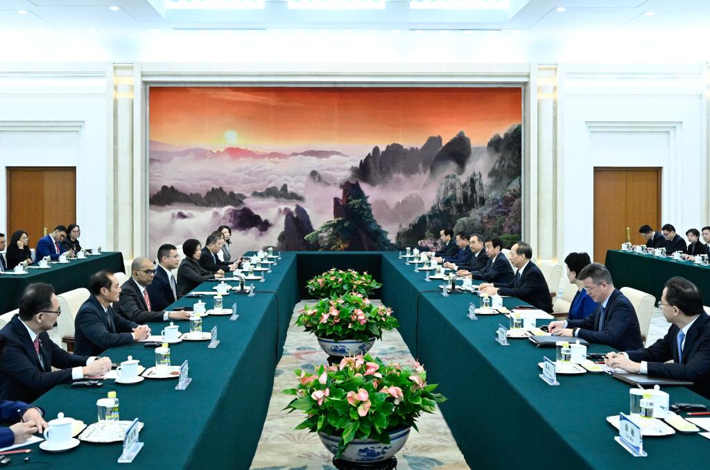 Shi Taifeng, a member of the Political Bureau of the Communist Party of China (CPC) Central Committee and head of the CPC Central Committee's Organization Department, meets with a delegation of Singapore's People's Action Party (PAP) led by Desmond Lee, chairman of the PAP and minister for education, in Beijing, capital of China, Jan. 5, 2026. (Xinhua/Shen Hong)