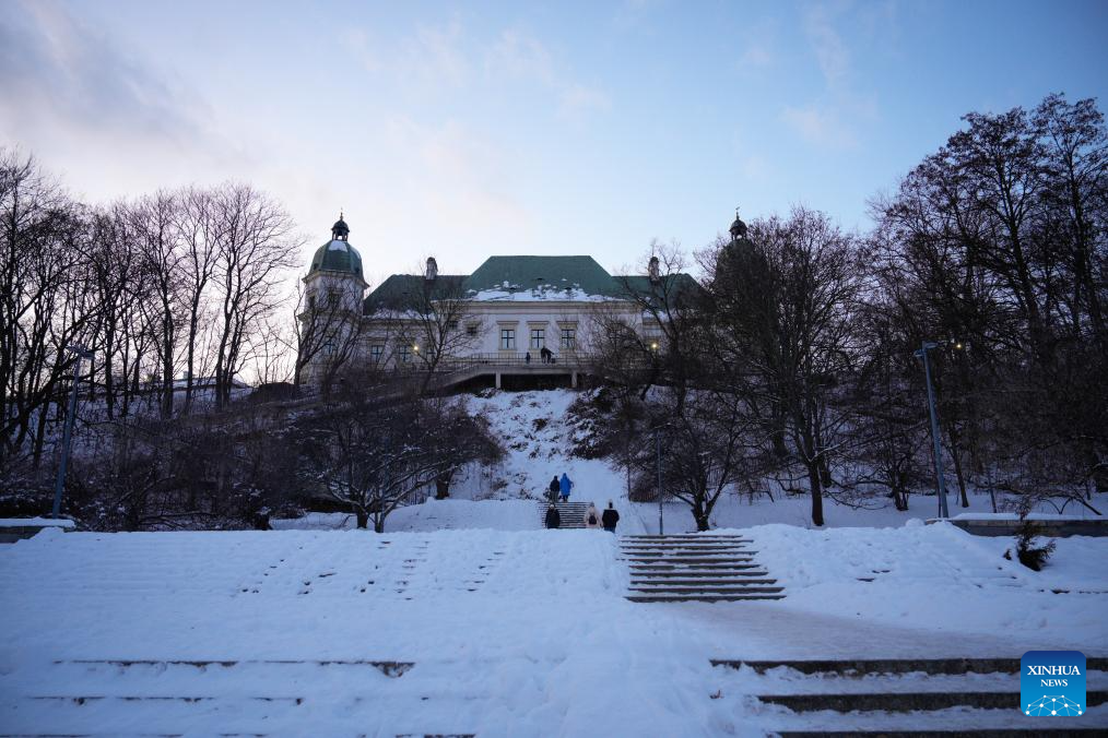 This photo taken on Jan. 4, 2026 shows a snow-covered park in Warsaw, Poland. Warsaw has recently seen continuous snowfall, bringing residents outdoors to enjoy winter activities. (Photo by Jaap Arriens/Xinhua)