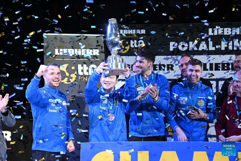 BERLIN, Jan. 5 (Xinhua) -- Chinese table tennis star Fan Zhendong claimed his first overseas club title after leading 1. FC Saarbrucken Tischtennis to a 3-1 victory over TTC RhonSprudel Fulda-Maberzell in the German Cup final in Neu-Ulm on Sunday.