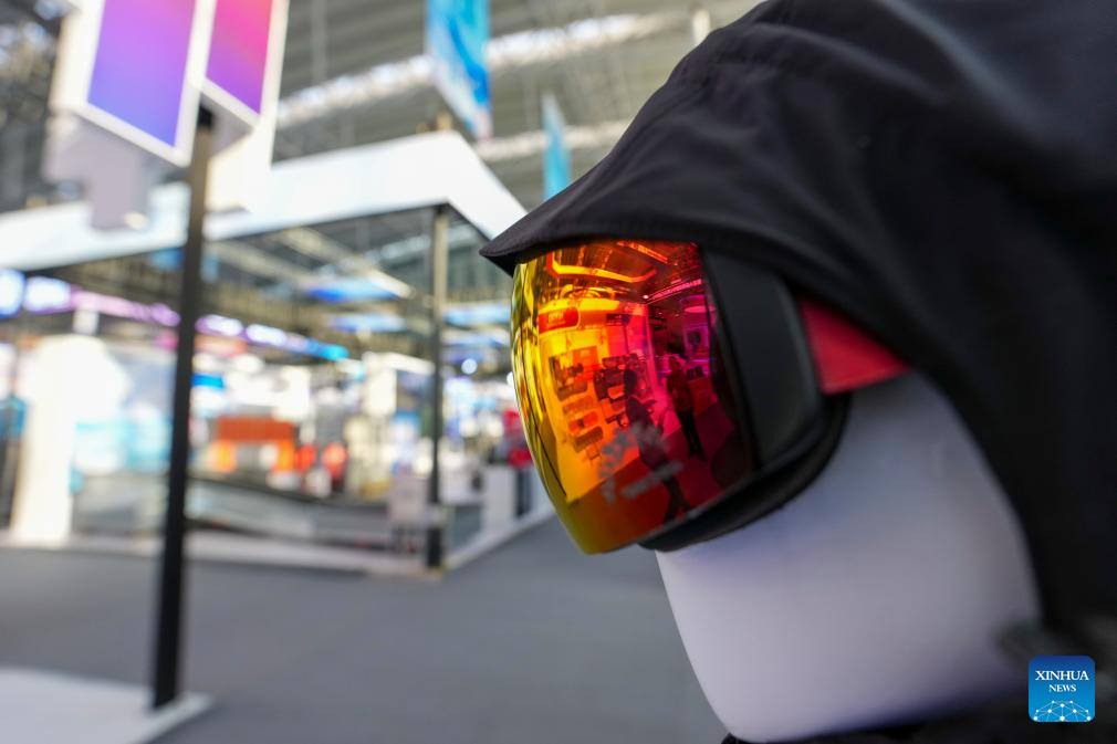 This photo shows a pair of snow goggles exhibited at the Harbin International Ice and Snow Economy Expo 2026 in Harbin, northeast China's Heilongjiang Province, Jan. 6, 2026. The three-day expo kicked off here on Tuesday, showcasing cutting-edge achievements of the ice-and-snow industry. (Xinhua/Wang Song)