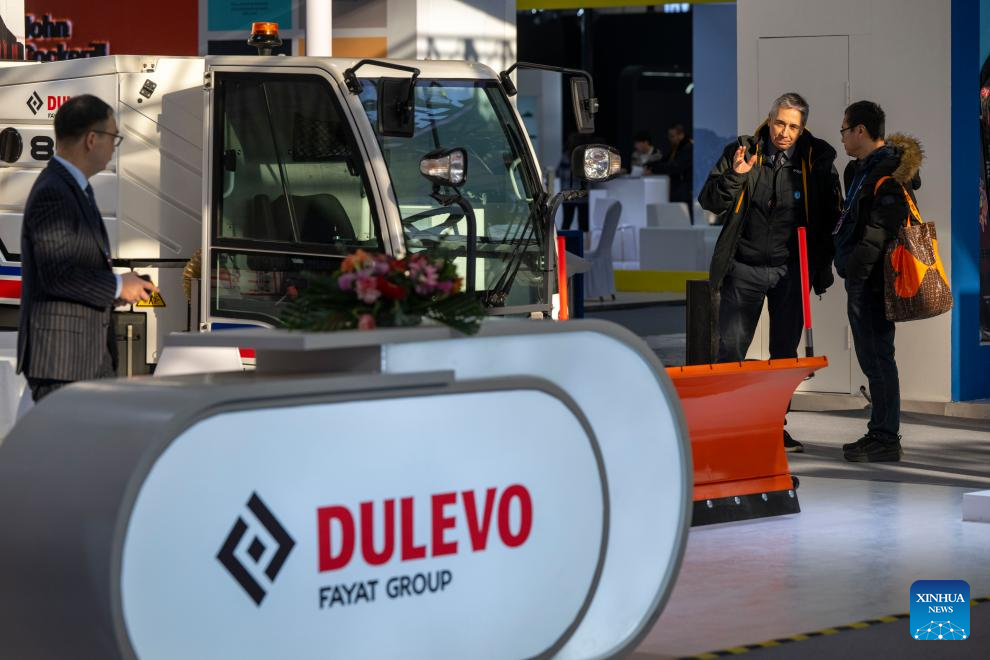 This photo shows a snow removal equipment exhibited at the Harbin International Ice and Snow Economy Expo 2026 in Harbin, northeast China's Heilongjiang Province, Jan. 6, 2026. The three-day expo kicked off here on Tuesday, showcasing cutting-edge achievements of the ice-and-snow industry. (Xinhua/Wang Song)