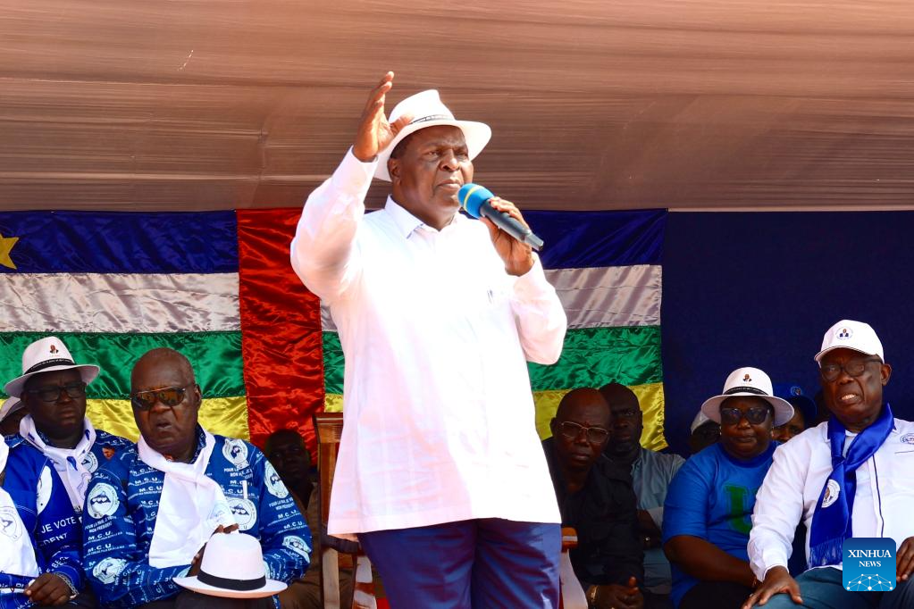 This file photo taken on Dec. 14, 2025 shows Faustin-Archange Touadera delivering a speech in Bangui, Central African Republic. Incumbent President of the Central African Republic Faustin-Archange Touadera has won the presidential election with an absolute majority of 76.15 percent of the vote, according to provisional results released by the National Elections Authority late Monday. (Xinhua)