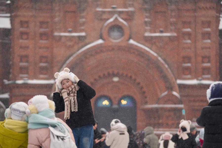 People visit the Central Street in Harbin, northeast China's Heilongjiang Province, Dec. 16, 2025. (Xinhua/Wang Song)Tourists visit the Harbin Ice-Snow World in Harbin, northeast China's Heilongjiang Province, Dec. 17, 2025. (Xinhua/Wang Song)Tourists pose for photos at the Harbin Ice-Snow World in Harbin, northeast China's Heilongjiang Province, Dec. 17, 2025. (Xinhua/Wang Jianwei)Tourists have fun at a square in Harbin, northeast China's Heilongjiang Province, Dec. 23, 2025. (Xinhua/Wang Jianwei)A contestant works on an ice sculpture at the Harbin Ice-Snow World in Harbin, northeast China's Heilongjiang Province, Jan. 3, 2026. (Xinhua/Zhang Tao)A drone photo shows tourists having fun on ice in Harbin, northeast China's Heilongjiang Province, Jan. 1, 2026. (Xinhua/Zhang Tao)