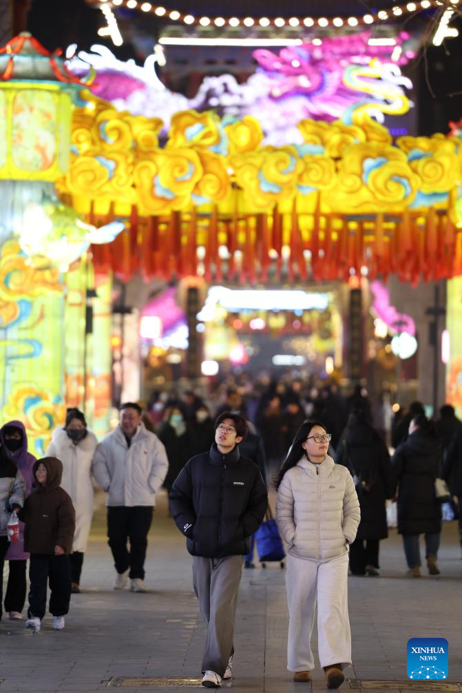 People visit a business street in Qilihe District of Lanzhou, northwest China's Gansu Province, on Jan. 6, 2026. At the beginning of the new year, Lanzhou has been actively creating a festive atmosphere and promoting the upgrading of mature business districts and characteristic streets in the urban area. A series of new products and services has been launched to boost the consumption. (Xinhua/Chen Bin)