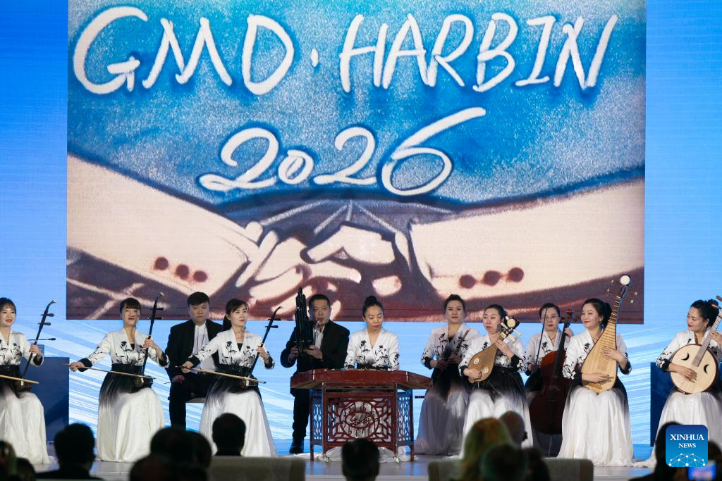 Artists perform at the main dialogue session of the "Global Mayors Dialogue in Harbin" in Harbin, northeast China's Heilongjiang Province, Jan. 7, 2026. (Xinhua/Zhang Tao)