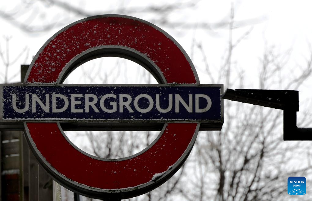 An underground sign in the snow is pictured in London, Britain, Jan. 6, 2026. Amber cold weather alerts remain in force for England through Friday, with snow, ice, strong winds and heavy rain expected to bring further hazards later in the week. (Xinhua/Li Ying)
