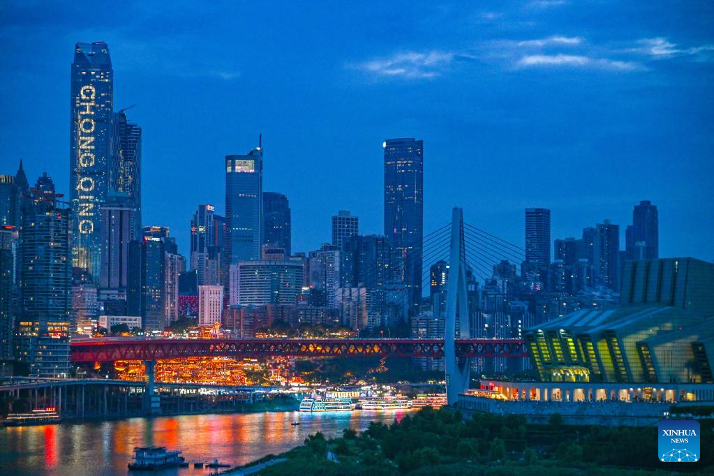 This photo taken on Aug. 23, 2025 shows a riverside city view of Chongqing, southwest China. Acting as a crucial ecological gateway for the upper reaches of the Yangtze River, Chongqing has intensified its environmental protection efforts in recent years.
