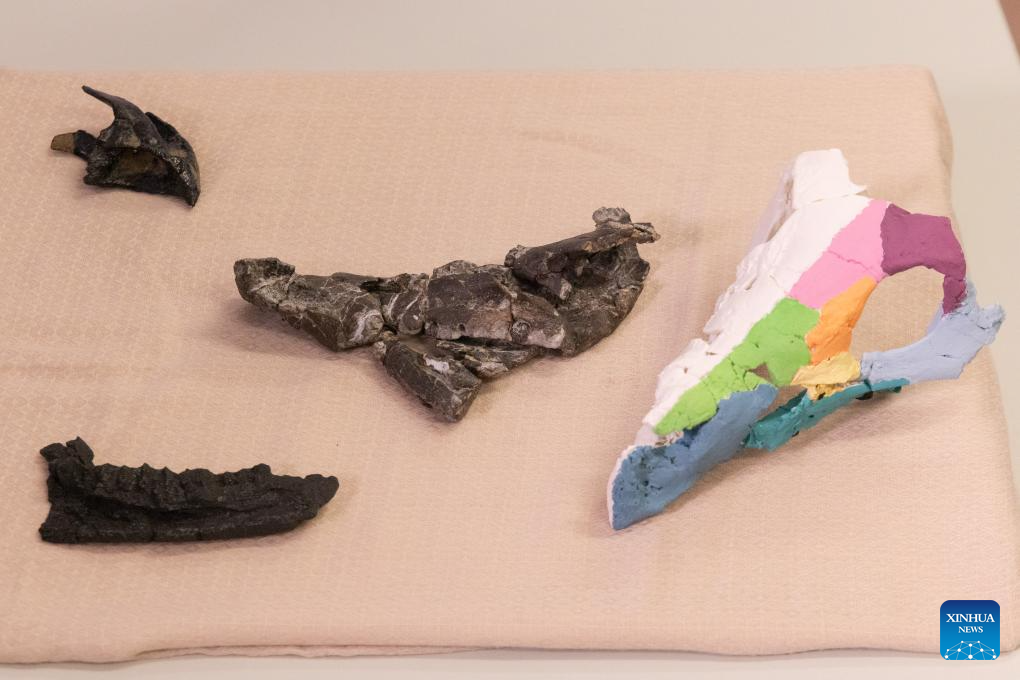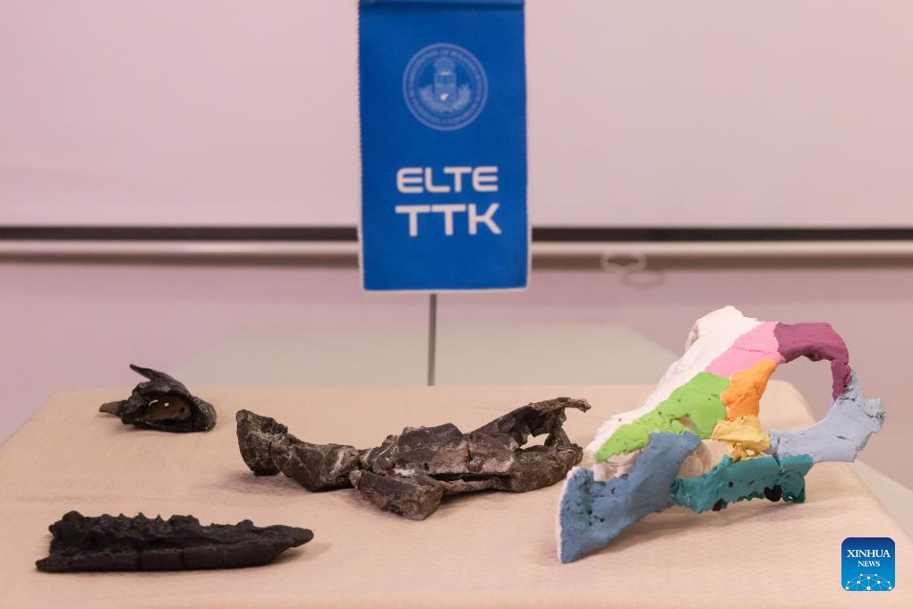 The fossil, attributed to Ajkaceratops Kozmai, was unearthed at the Iharkut (central Hungary) fossil site in the Bakony Mountains and studied by an international research team led by paleontologist Attila Osi of Eotvos Lorand University (ELTE). The research findings were published in the scientific journal Nature. (Photo by Attila Volgyi/Xinhua)