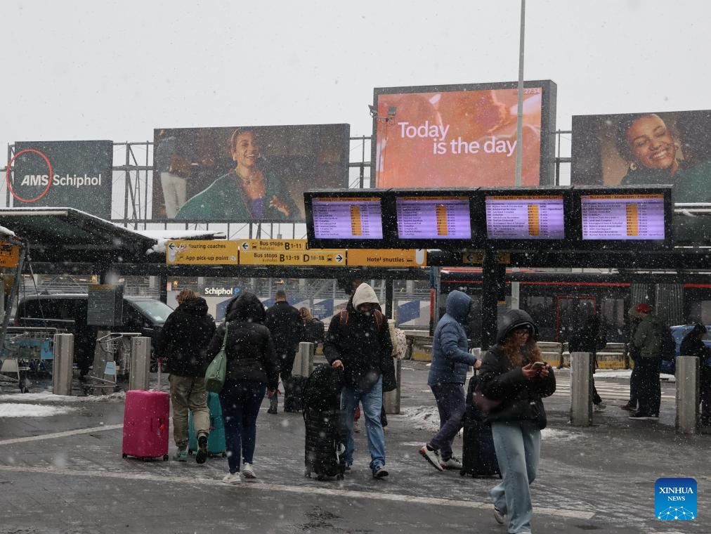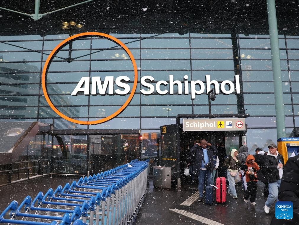 This photo taken on Jan. 7, 2026 shows the entrance of Amsterdam Schiphol Airport in Amsterdam, the Netherlands. Persistent winter weather and strong winds severely affected air traffic in the Netherlands. (Photo by Sun Jingjing/Xinhua)