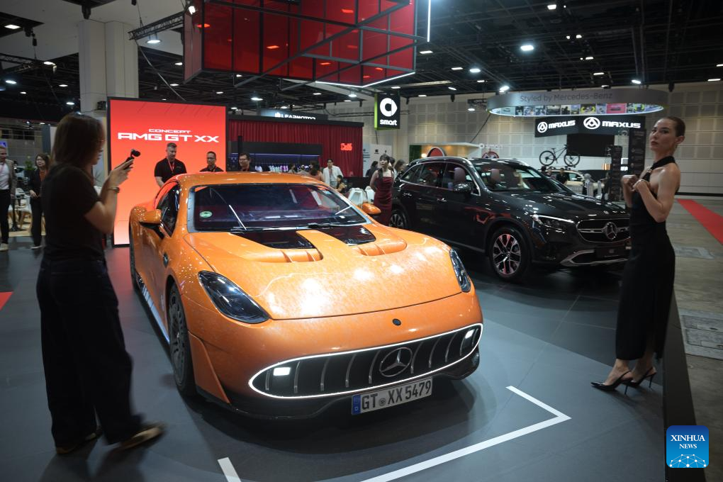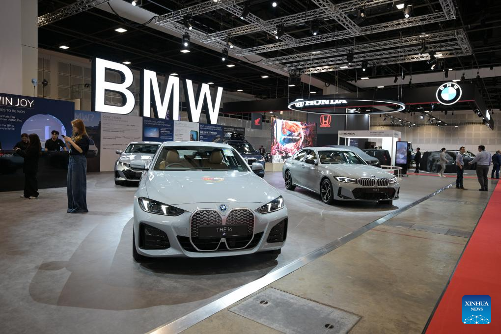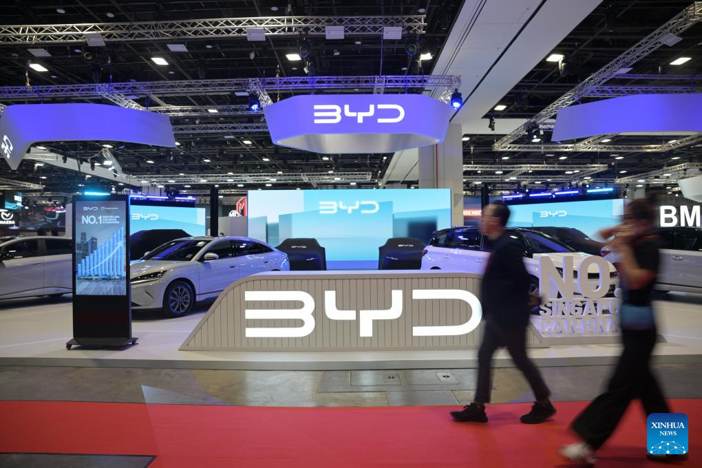 Visitors walk past a Chinese brand pavilion at the Singapore Motorshow 2026 held in Suntec Singapore Convention and Exhibition Centre in Singapore, on Jan. 8, 2026. The Singapore Motorshow 2026 will be held from Jan. 8 to 11. (Photo by Then Chih Wey/Xinhua)