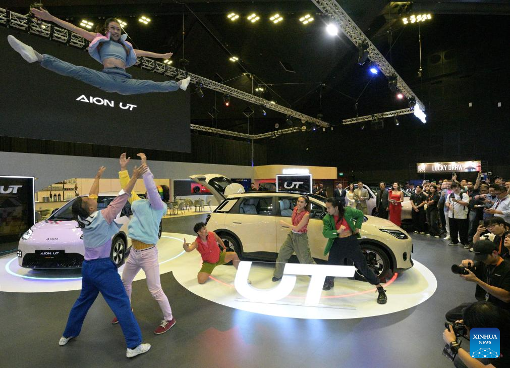Dancers perform at a Chinese brand pavilion at the Singapore Motorshow 2026 held in Suntec Singapore Convention and Exhibition Centre in Singapore, on Jan. 8, 2026. The Singapore Motorshow 2026 will be held from Jan. 8 to 11. (Photo by Then Chih Wey/Xinhua)