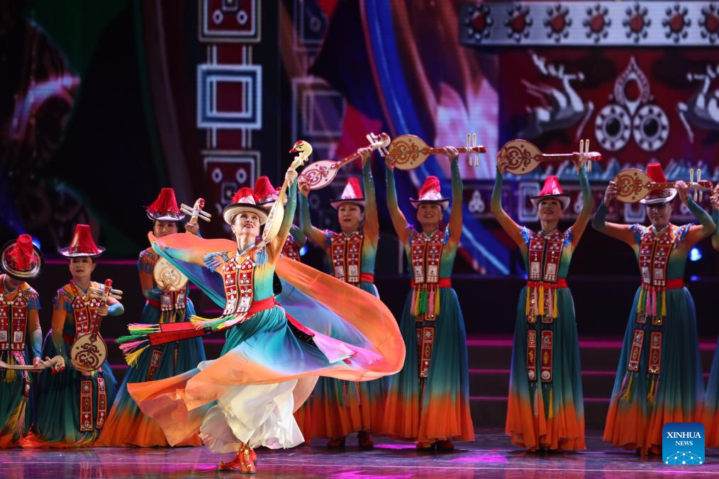 Actors from Lanzhou perform a dance during the first show of a mass cultural performance and broadcasting event held at the Lanzhou Concert Hall in Lanzhou, northwest China's Gansu Province, on Jan. 7, 2026. The mass cultural performance and broadcasting event, which plans to organize 240 mass cultural shows throughout the year, aims to build cultural and artistic stages for the general public at their doorsteps. (Xinhua/Chen Bin)