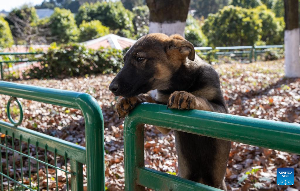 A Kunming dog pup is pictured at the Ministry of Public Security's Kunming police dog base in Kunming, southwest China's Yunnan Province, Jan. 5, 2026.