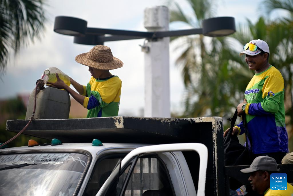 A worker refuels a truck on a street in Puerto Ordaz, Ciudad Guayana, Bolivar, Venezuela, Jan. 8, 2026. (Photo by Lucio Tavora/Xinhua)