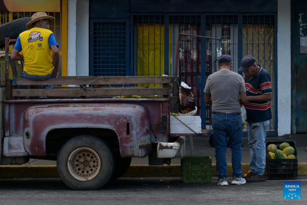 A vendor sells fruits on a street in Puerto Ordaz, Ciudad Guayana, Bolivar, Venezuela, Jan. 8, 2026. (Photo by Lucio Tavora/Xinhua)