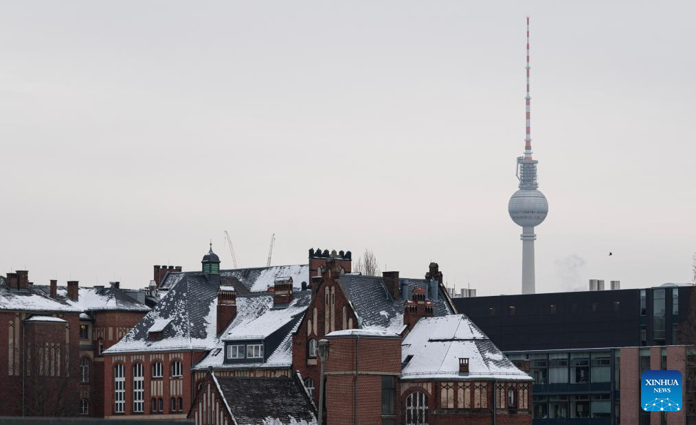 Rooftops are covered by snow in Berlin, capital of Germany, Jan. 9, 2026. Winter Storm Elli swept across large parts of Germany on Friday, killing at least three people and severely disrupting transport, schools and public services, particularly in the country's north. (Xinhua/Zhang Haofu)