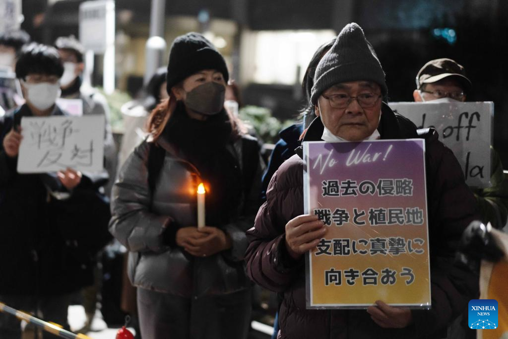 Protester Moriya told Xinhua that the U.S. action clearly violated international law and that Takaichi should have stated unequivocally that "Japan cannot form an alliance with a country that resorts to the use of force, let alone fight alongside it."