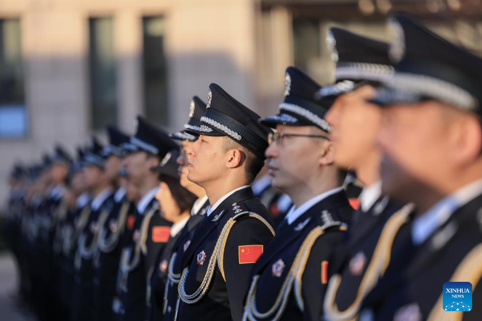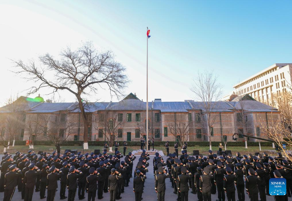 A flag-raising ceremony is held at the Ministry of Public Security to mark the sixth Chinese People's Police Day in Beijing, capital of China, on Jan. 10, 2026. (Xinhua/Yin Gang)