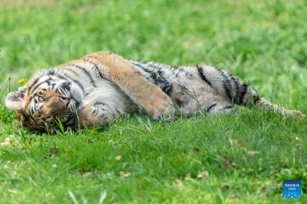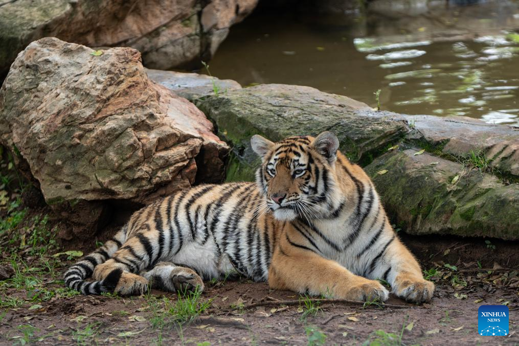 Eleven-month-old Bengal tiger cubs are seen at the Johannesburg Zoo in Johannesburg, South Africa, on Jan. 9, 2026. Two Bengal tiger cubs were rescued from illegal trade. They made their public debut on Jan. 8. (Photo by Shiraaz Mohamed/Xinhua)