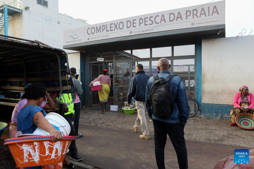 Citizens enter the Praia Fishing Complex in Praia, capital of Cape Verde, on Jan. 10, 2026. Cape Verde is an island country located in the Atlantic Ocean off the west coast of Africa, endowed with abundant marine resources. Fisheries play a vital role in the national economy and livelihoods, serving as a key source of employment, food supply and income. (Photo by Elton Monteiro/Xinhua)