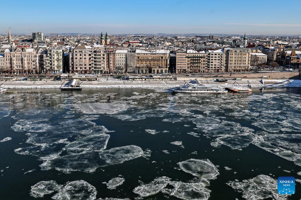 Ice floes drift on the Danube River in Budapest, Hungary, on Jan. 12, 2026. (Photo by David Balogh/Xinhua)