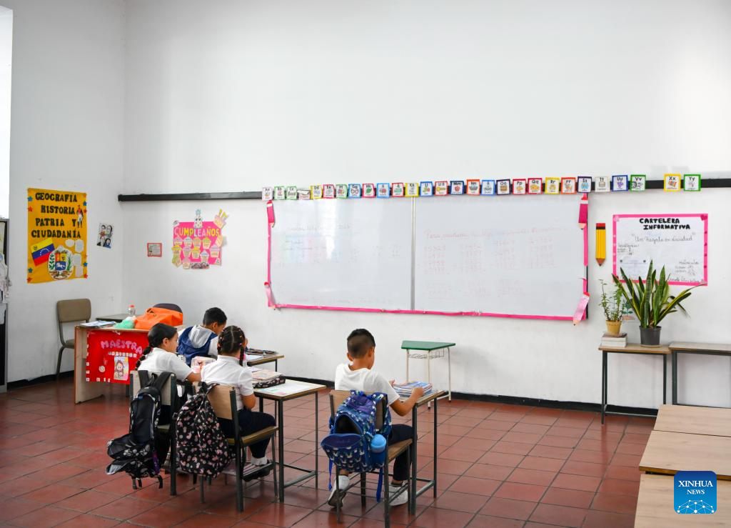 Students study in a classroom on the first day of the new semester in a public school in Caracas, Venezuela, Jan. 12, 2026. The second half of the 2025-2026 academic year for primary and secondary education began on Monday in Venezuela. (Xinhua/Ding Hongfa)