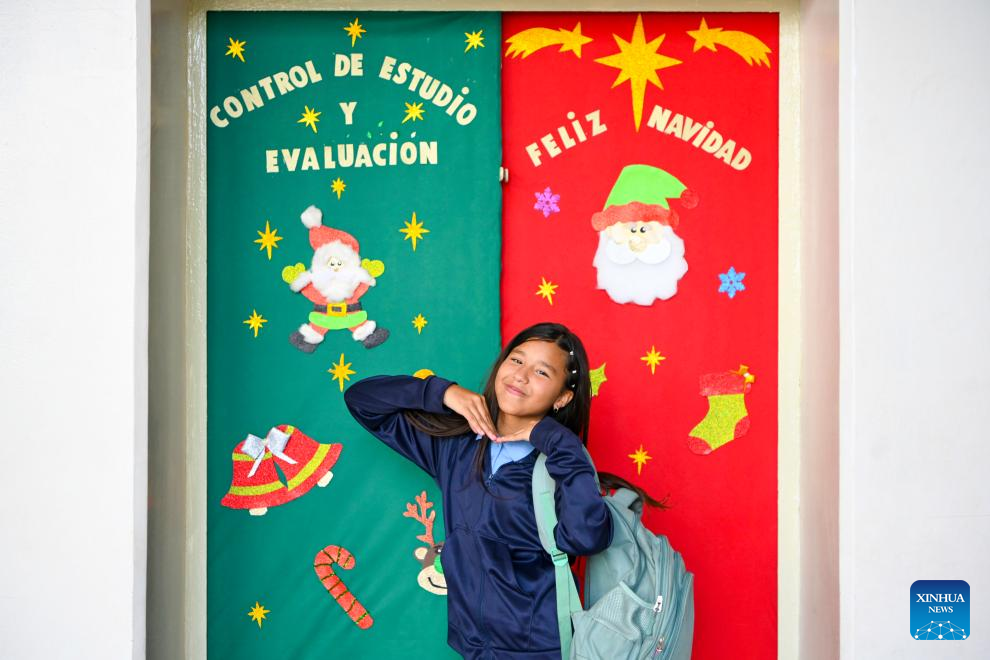 A student poses for a photo during a class break on the first day of the new semester in a public school in Caracas, Venezuela, Jan. 12, 2026. The second half of the 2025-2026 academic year for primary and secondary education began on Monday in Venezuela. (Xinhua/Ding Hongfa)