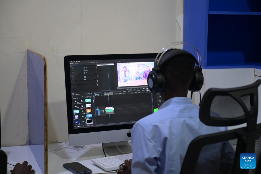 This photo taken on Jan. 12, 2026 shows an editorial staff member working at the Somali National Television in Mogadishu, Somalia. The Somali National Television resumed its broadcasting in 2011 after a two-decade break off due to the civil war. Nowadays, it is on air around the clock for audiences both at home and abroad. (Xinhua/Yang Guang)
