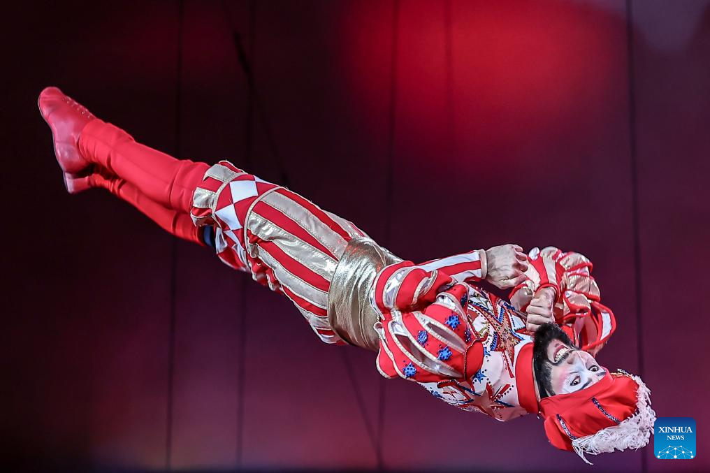 An artist performs during the gala show of the 16th Budapest International Circus Festival in Budapest, Hungary, on Jan. 12, 2026. (Photo by David Balogh/Xinhua)