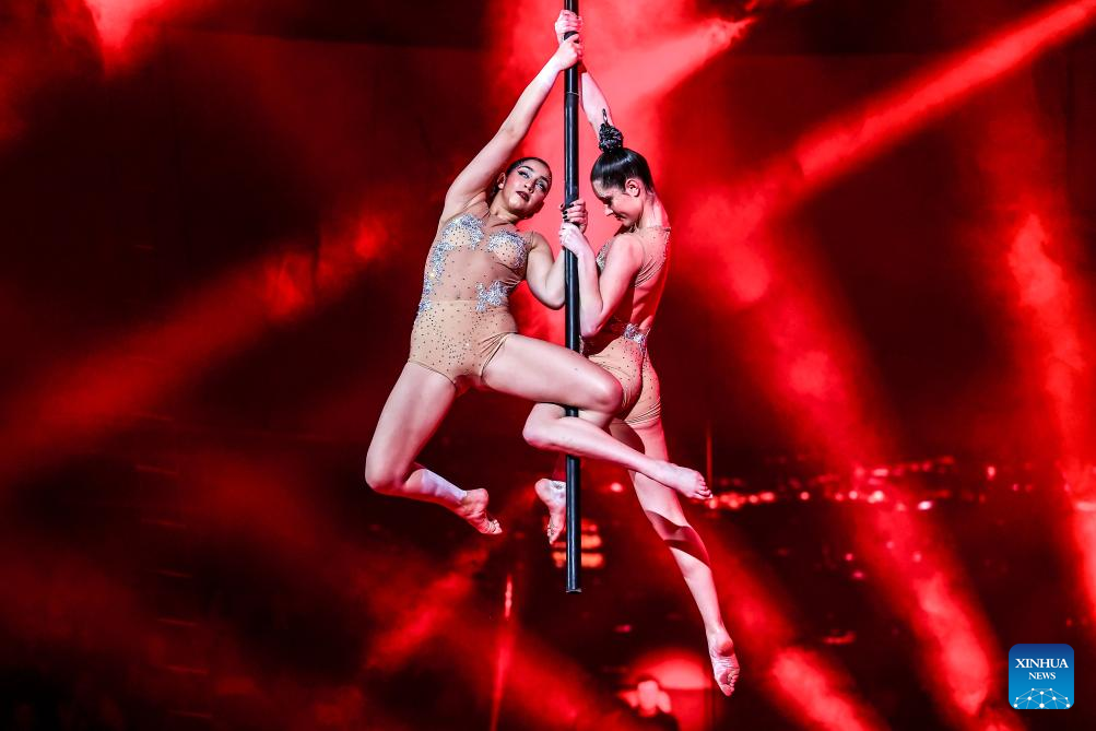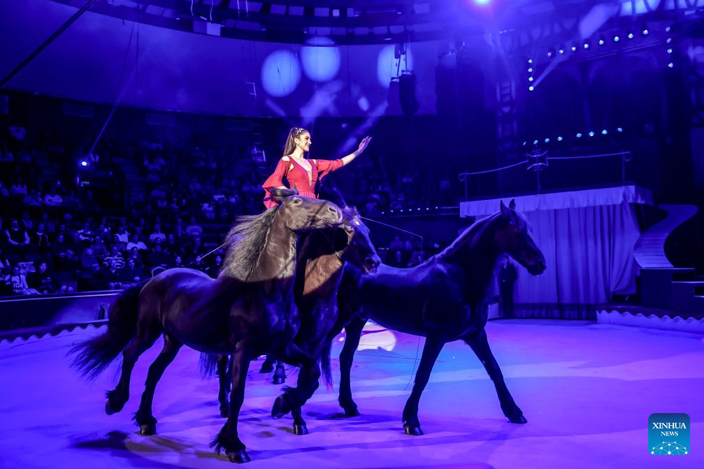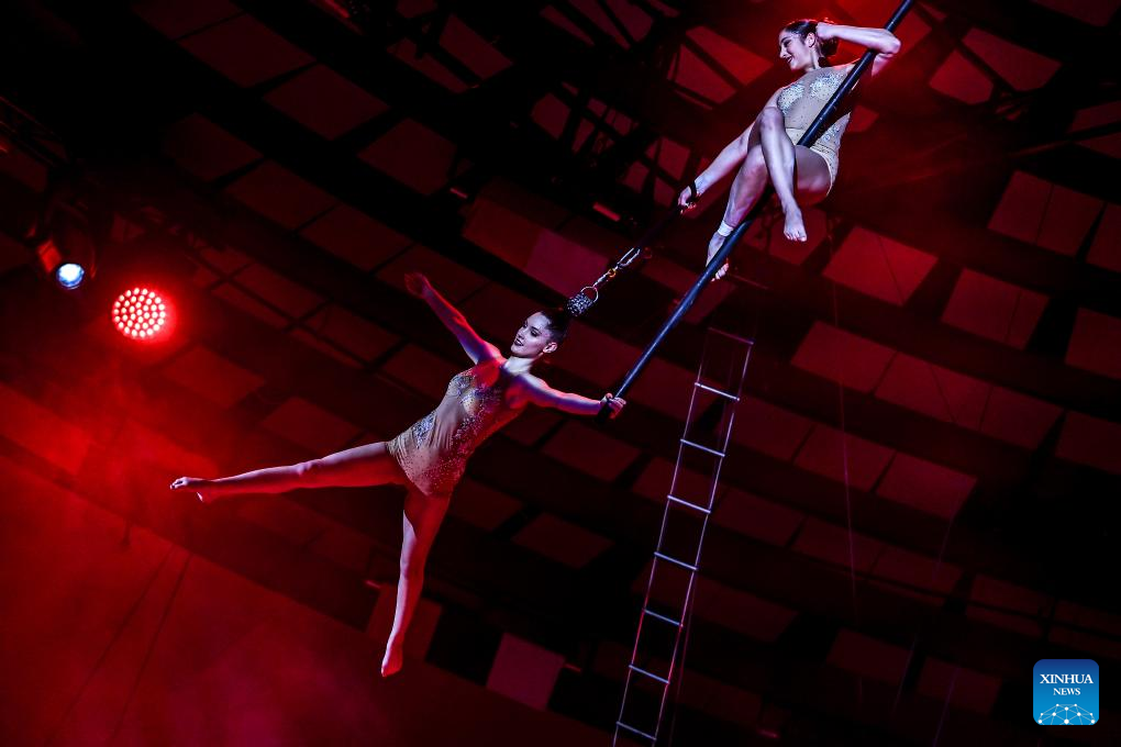 Artists perform during the gala show of the 16th Budapest International Circus Festival in Budapest, Hungary, on Jan. 12, 2026. (Photo by David Balogh/Xinhua)