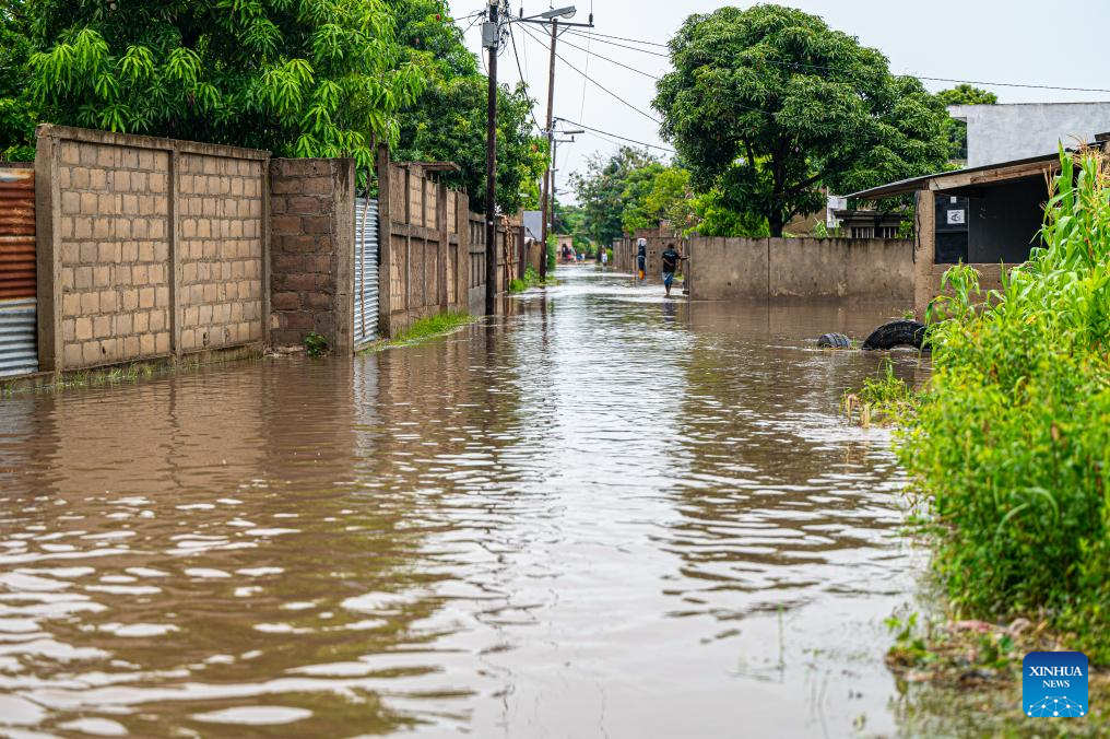 A resident wades through floodwater caused by heavy rainfall in Matola City, Maputo Province, Mozambique, Jan. 12, 2026. Mozambique is currently in the peak of its rainy season, a period marked by frequent alerts for heavy rains and strong winds, particularly in the central and southern regions. (Photo by Mendes Mondlane/Xinhua)