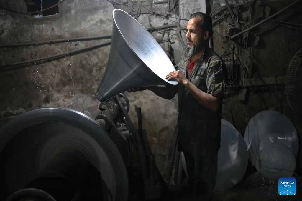 A worker makes a horn speaker at a factory in Dhaka, Bangladesh, on Jan. 13, 2026. (Photo by Habibur Rahman/Xinhua)