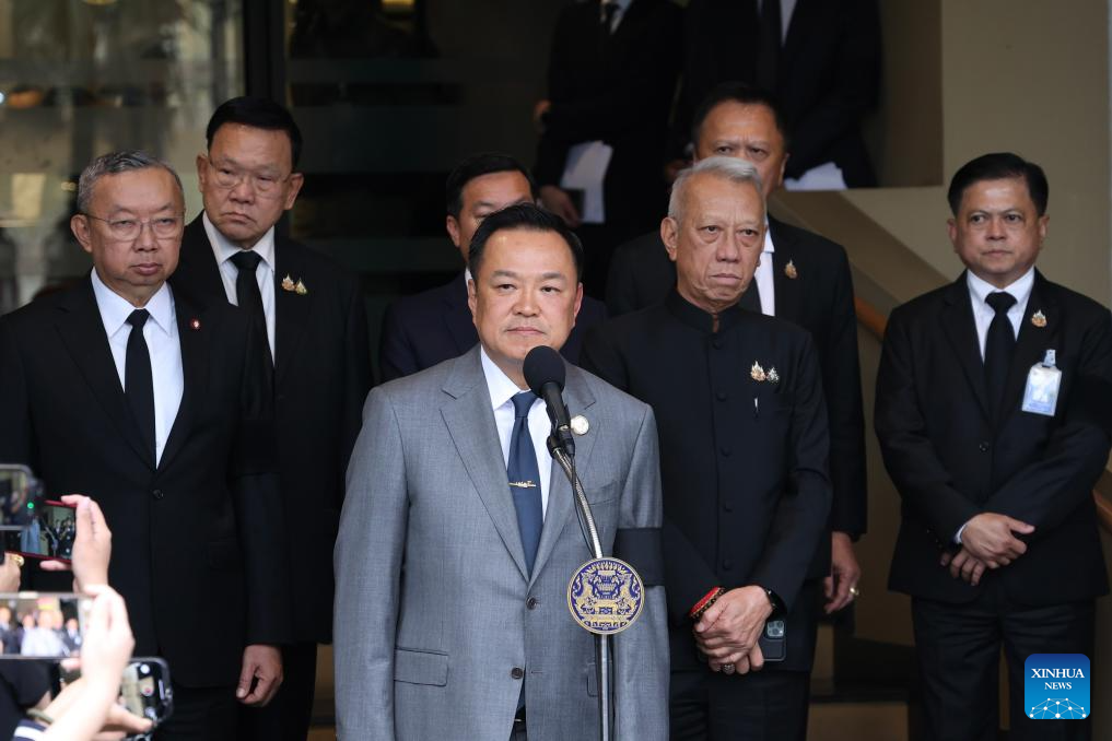 BANGKOK, Jan. 15 (Xinhua) -- Thailand's Prime Minister Anutin Charnvirakul on Thursday ordered the transport ministry to terminate its contracts and pursue legal action against a contractor who was involved in two fatal construction crane accidents.