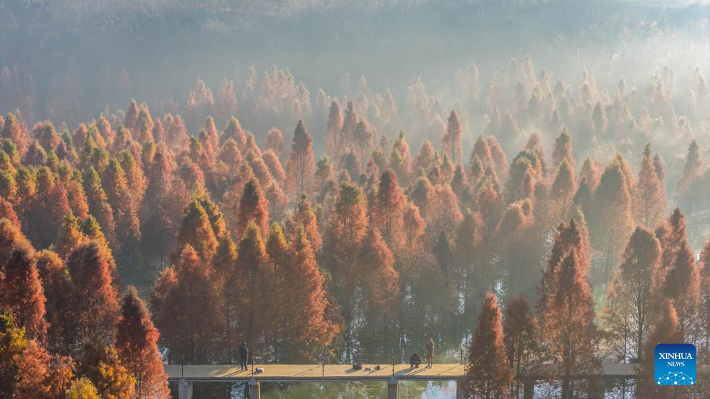 Scenery of dawn redwood wetland in Kunming, China's Yunnan-Xinhua
