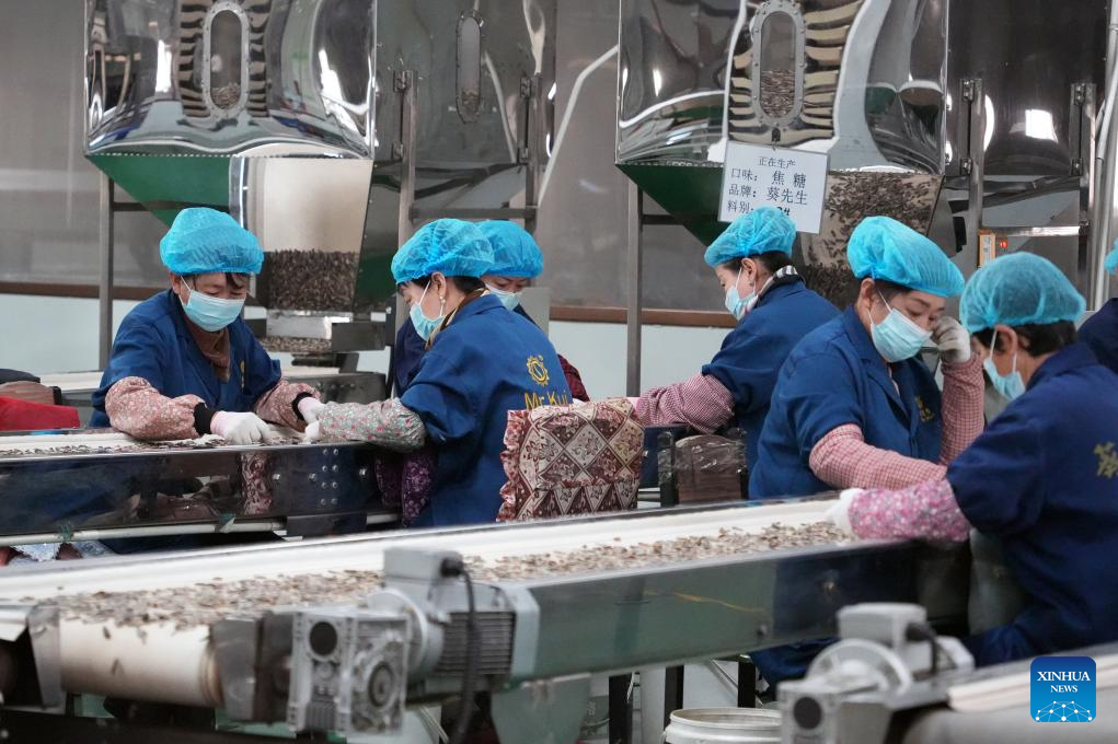 HOHHOT, Jan. 15 (Xinhua) -- In a humming factory in north China's Inner Mongolia Autonomous Region, conveyor belts carry plump sunflower seeds through sorting machines, separating them by size and color before sealing them into export-ready bags.