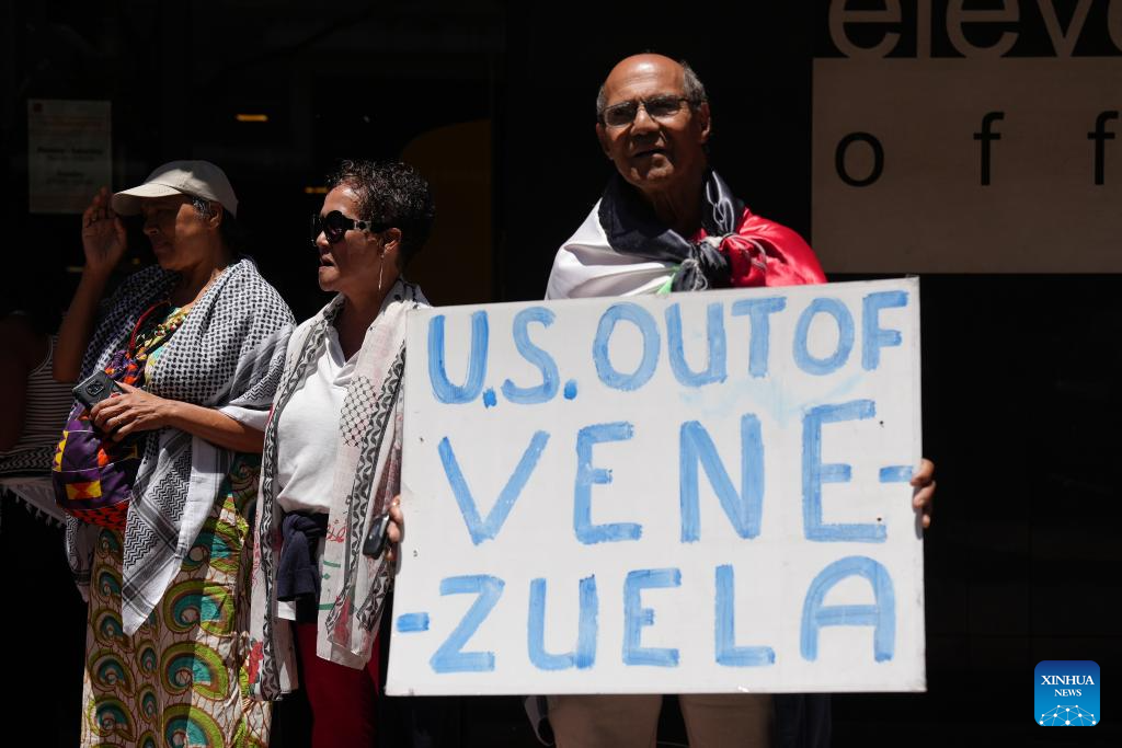 Michael Titus, a 75-year-old retired pharmacist who joined the rally, told Xinhua that the U.S. action against Venezuela is "illegal," calling it "only a symptom of what America is doing in the rest of the world."