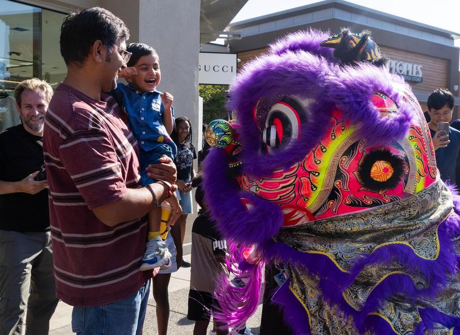 People watch a lion dance performance during a Mid-Autumn Festival celebration in Toronto, Canada, on Oct. 4, 2025. (Photo by Zou Zheng/Xinhua)