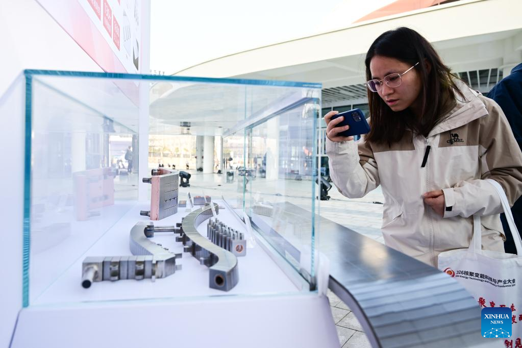 A man visits the Fusion Energy Technology and Industry Conference 2026 in Hefei, east China's Anhui Province, Jan. 16, 2026. The conference is held here from Jan. 16 to Jan. 17, which aims to build a collaborative and progressive innovation and industrial ecosystem for nuclear fusion energy. (Xinhua/Zhou Mu)
