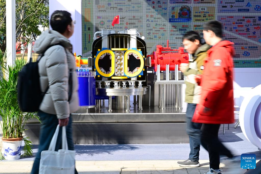 People view a model of the Experimental Advanced Superconducting Tokamak (EAST) during the Fusion Energy Technology and Industry Conference 2026 in Hefei, east China's Anhui Province, Jan. 16, 2026. The conference is held here from Jan. 16 to Jan. 17, which aims to build a collaborative and progressive innovation and industrial ecosystem for nuclear fusion energy. (Xinhua/Zhou Mu)