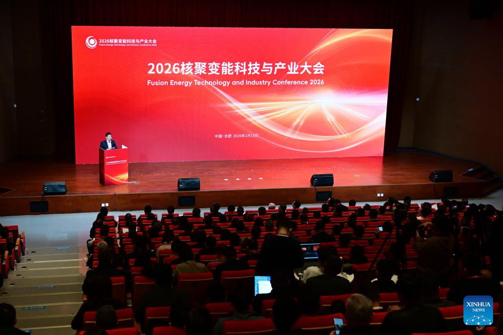 This photo taken on Jan. 16, 2026 shows a scene during the Fusion Energy Technology and Industry Conference 2026 in Hefei, east China's Anhui Province. The conference is held here from Jan. 16 to Jan. 17, which aims to build a collaborative and progressive innovation and industrial ecosystem for nuclear fusion energy. (Xinhua/Zhou Mu)