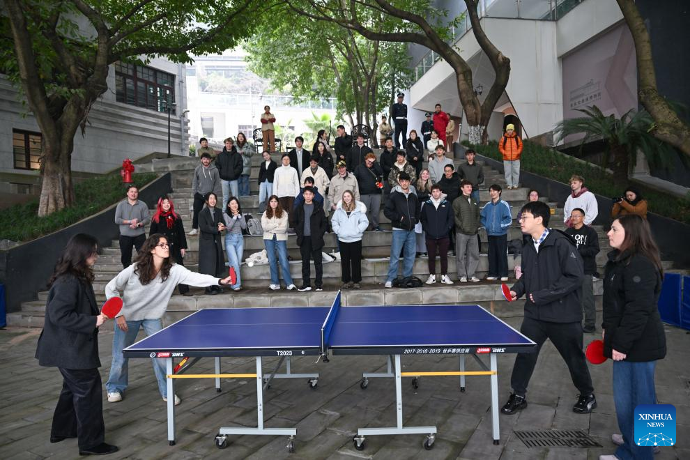 Co-hosted by the Chongqing People's Association for Friendship with Foreign Countries and the Stilwell Research Center, the event featured a tour of Joseph Stilwell's former residence and a WWII exhibition, culminating in a friendly game of ping-pong between the Chinese and American youths. (Xinhua/Chen Cheng)