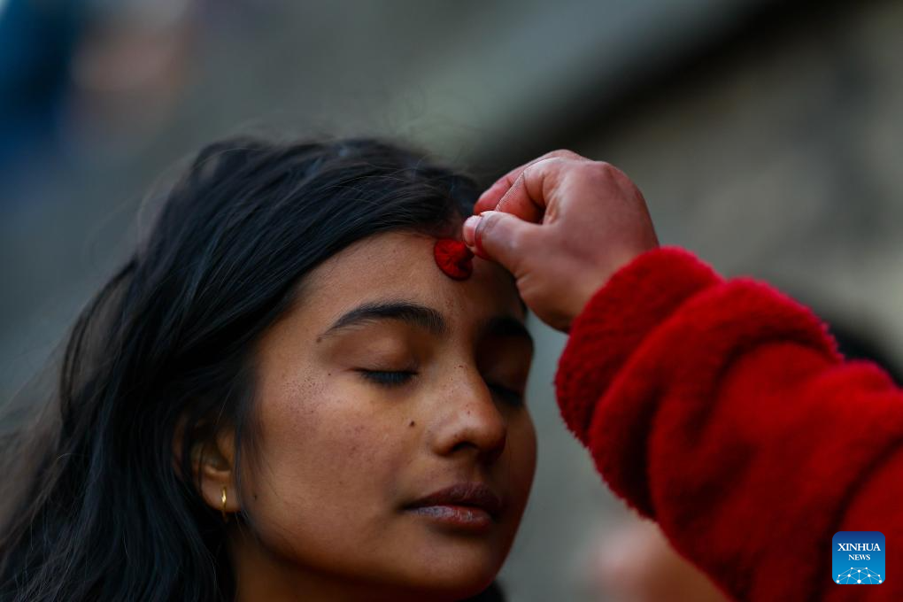 A devotee performs a ritual during the month-long Madhav Narayan Festival at Pashupatinath Temple in Kathmandu, Nepal, Jan. 18, 2026. The festival is observed through fasting and praying to Goddess Swasthani and God Madhav Narayan. (Photo by Sulav Shrestha/Xinhua)