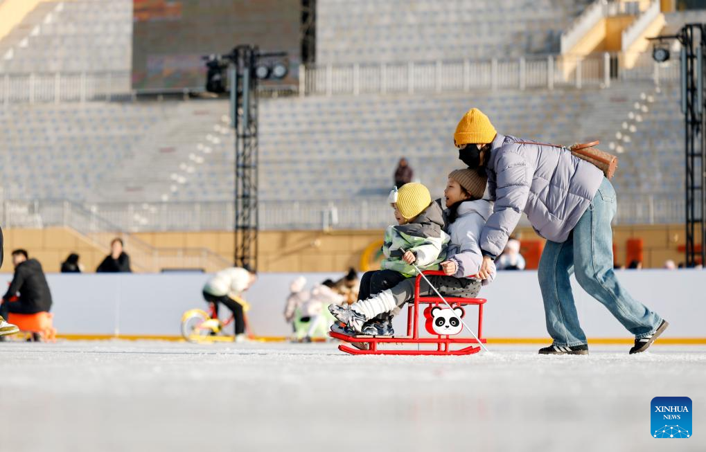 Children have fun on an ice rink at a park in Yinchuan, northwest China's Ningxia Hui Autonomous Region, Jan. 17, 2026. (Xinhua/Wang Peng)
