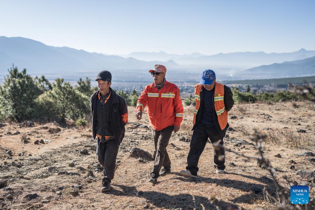 Forest rangers of Yuhu Village conduct patrols at the foot of Yulong Snow Mountain in Lijiang, southwest China's Yunnan Province, Jan. 18, 2026. Yuhu Village, nestled in Baisha Township of Yulong Naxi Autonomous County in the city of Lijiang in Yunnan, is one of the earliest settlements of the Naxi ethnic people. The village was once among the poorest villages in Lijiang because of its poor soil and limited transportation links.