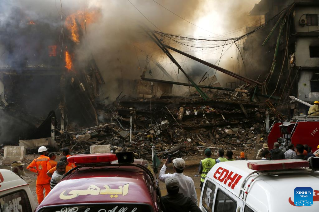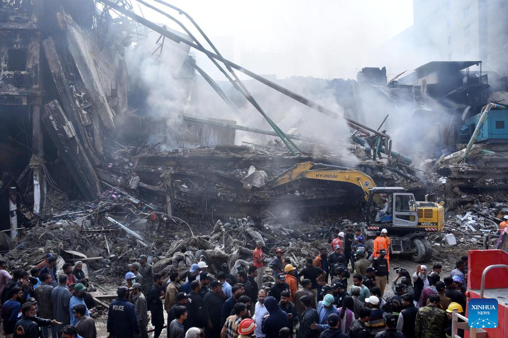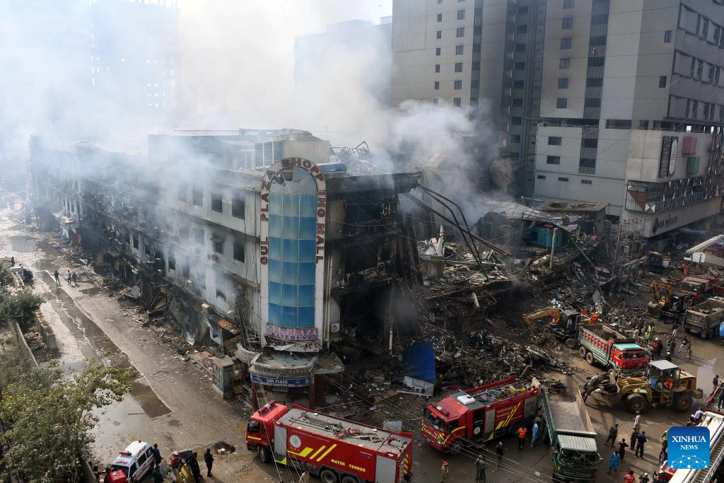 ISLAMABAD, Jan. 19 (Xinhua) -- The death toll from a fire at a shopping mall in Pakistan's southern port city of Karachi rose to 14 on Monday morning after rescue teams recovered more bodies during a search operation, officials said.